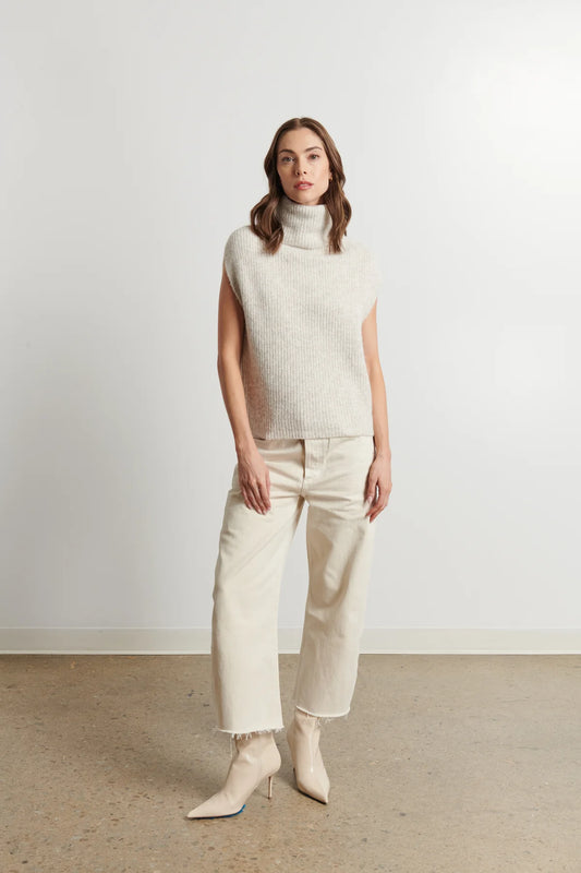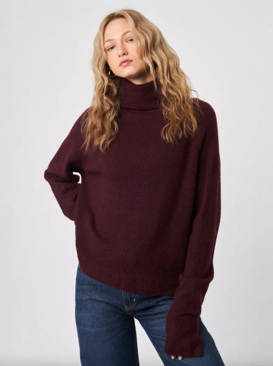 Boxy 3/4 Sleeve Turtleneck Sweater with Back Yoke