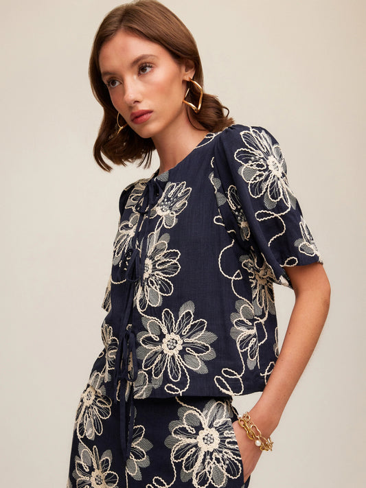 Nadine Embroidered Bow Top