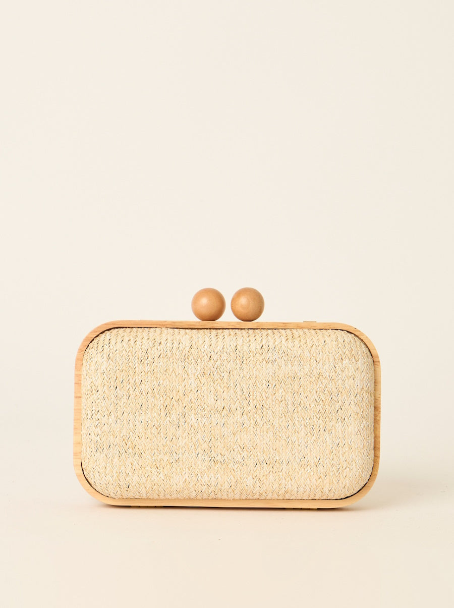 Brooke Clutch is your warm-weather statement piece: a naturally textured woven straw clutch framed in smooth wood with a chic double-ball clasp. Lightweight and structured, it elevates everything from linen sets and sundresses to wedding-guest looks—perfect for vacations, summer nights, brunch, and beach-to-dinner plans.