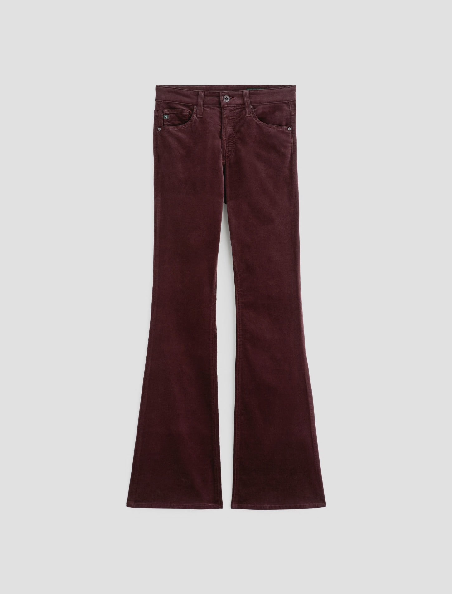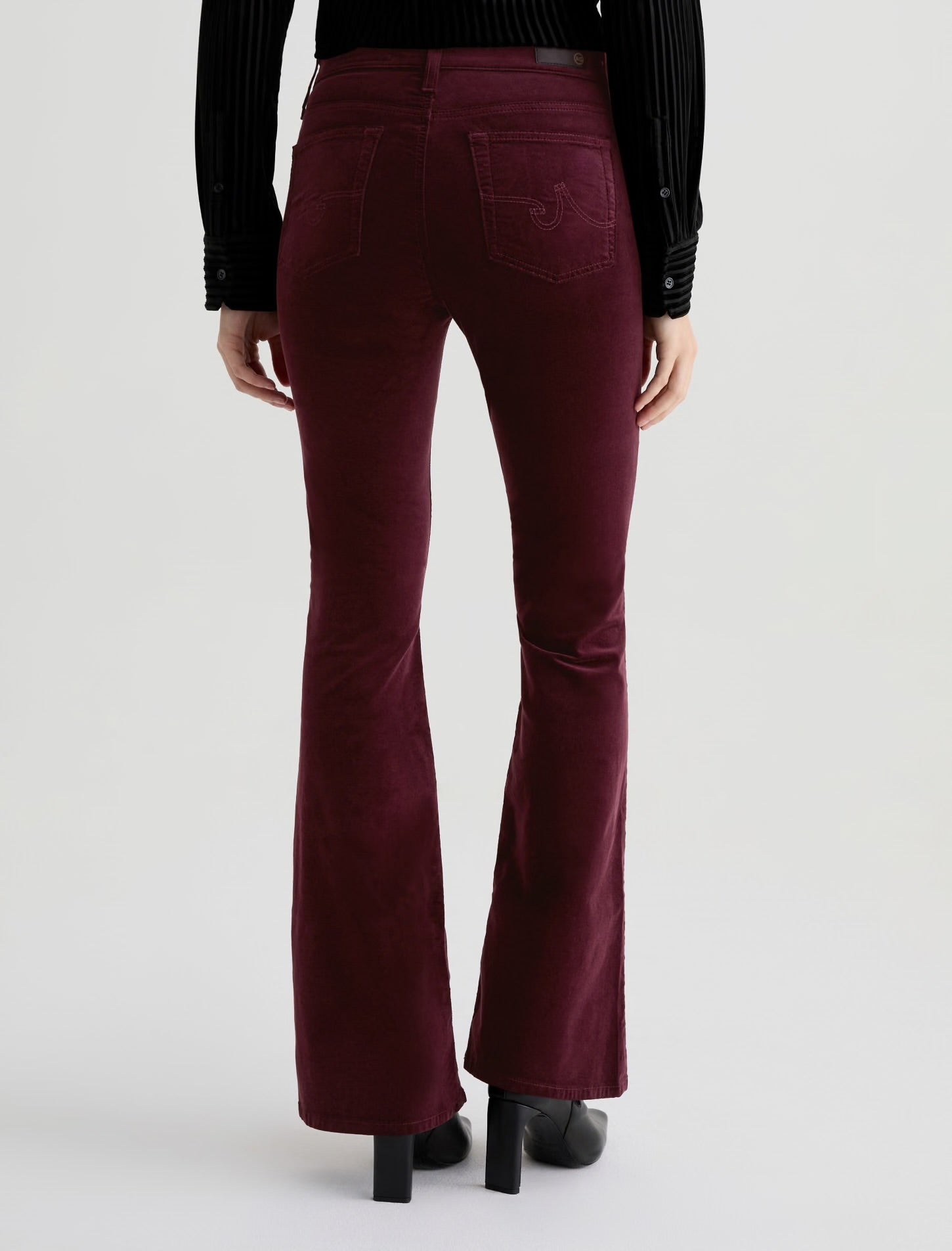 The Farrah Boot Velvet is a bootcut pant with a mid-rise waist and flattering silhouette. Features a fitted hip and thigh with a subtle flare from the knee down. Crafted from Soft Plush Velvet with a touch of stretch for all-day comfort and style in a rich red hue.