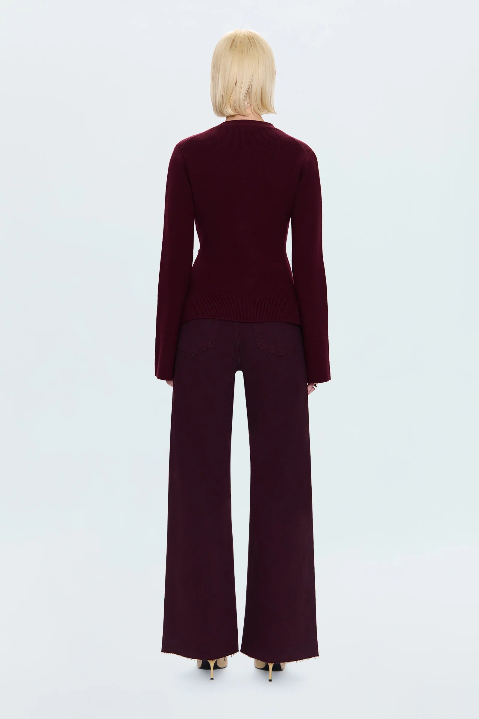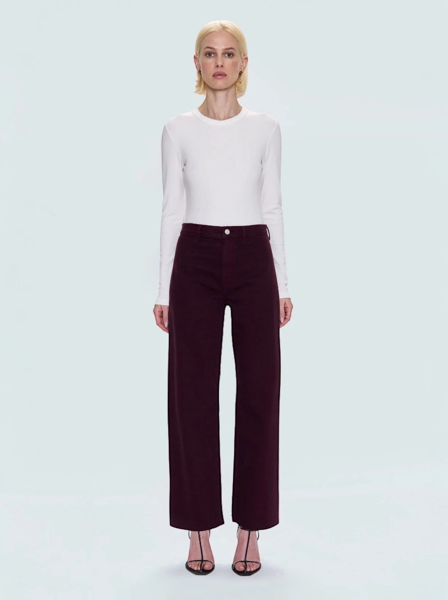 The wide leg that changes everything. Penny sits at a high rise with an ultra wide leg silhouette and full-length 28" inseam that creates effortless drama. The relaxed wide leg flows beautifully while the high rise anchors the proportions perfectly. Crafted from our comfort stretch fabric in Claret, a rich burgundy tone.