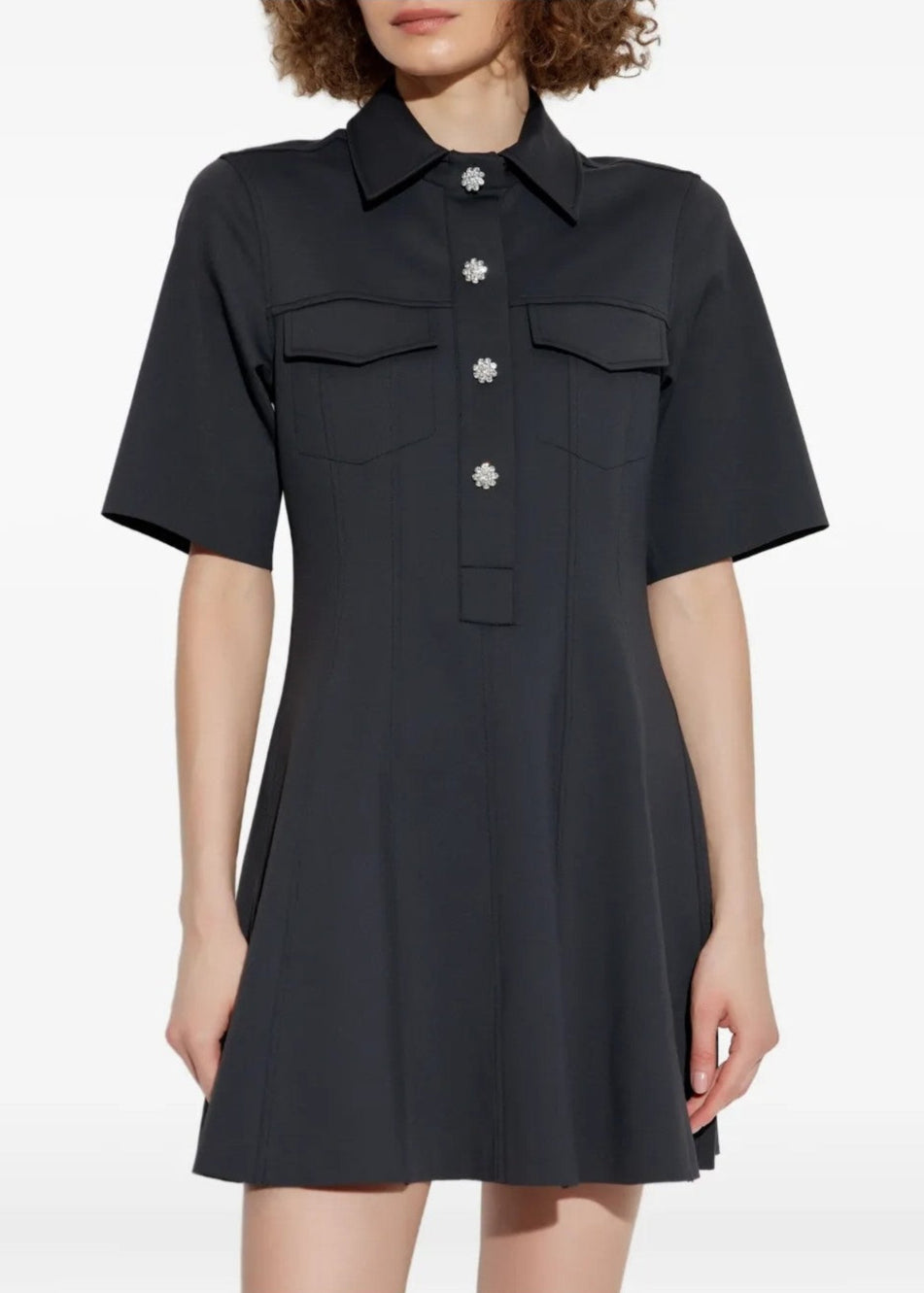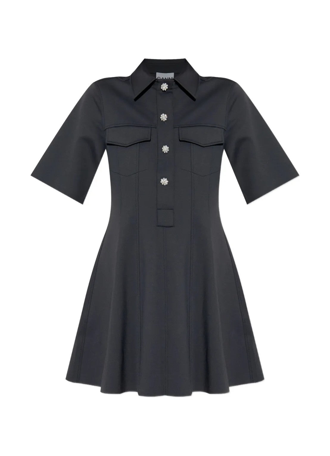 Discover the sophisticated and laid-back style of Ganni with this scuba neoprene fitted mini dress. Featuring a slim fit and short sleeves, it's perfect for making a statement on any occasion. Its black color makes it a versatile and elegant must-have for your wardrobe.