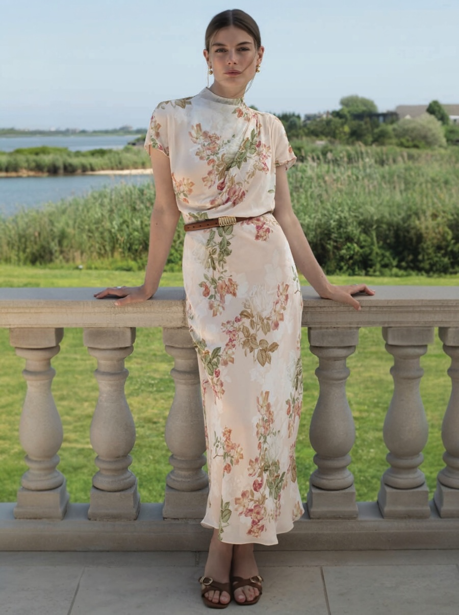 Enchanting rose blossoms romance this fluttery, ankle-length skirt made from a light and airy georgette fabric.