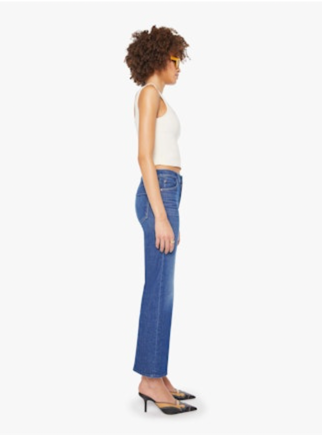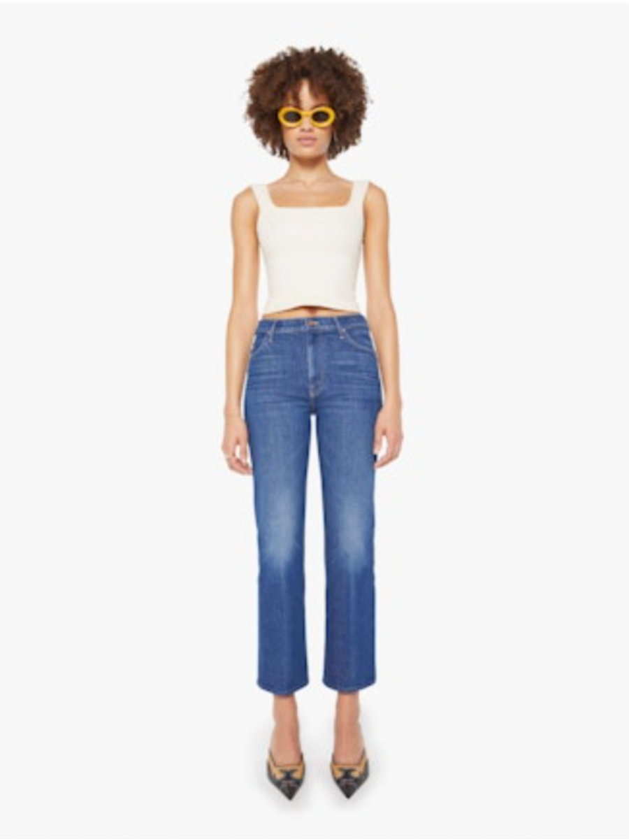 Mid-wash straight-leg jeans with a cropped hem and clean silhouette. A versatile everyday denim designed for effortless styling.
