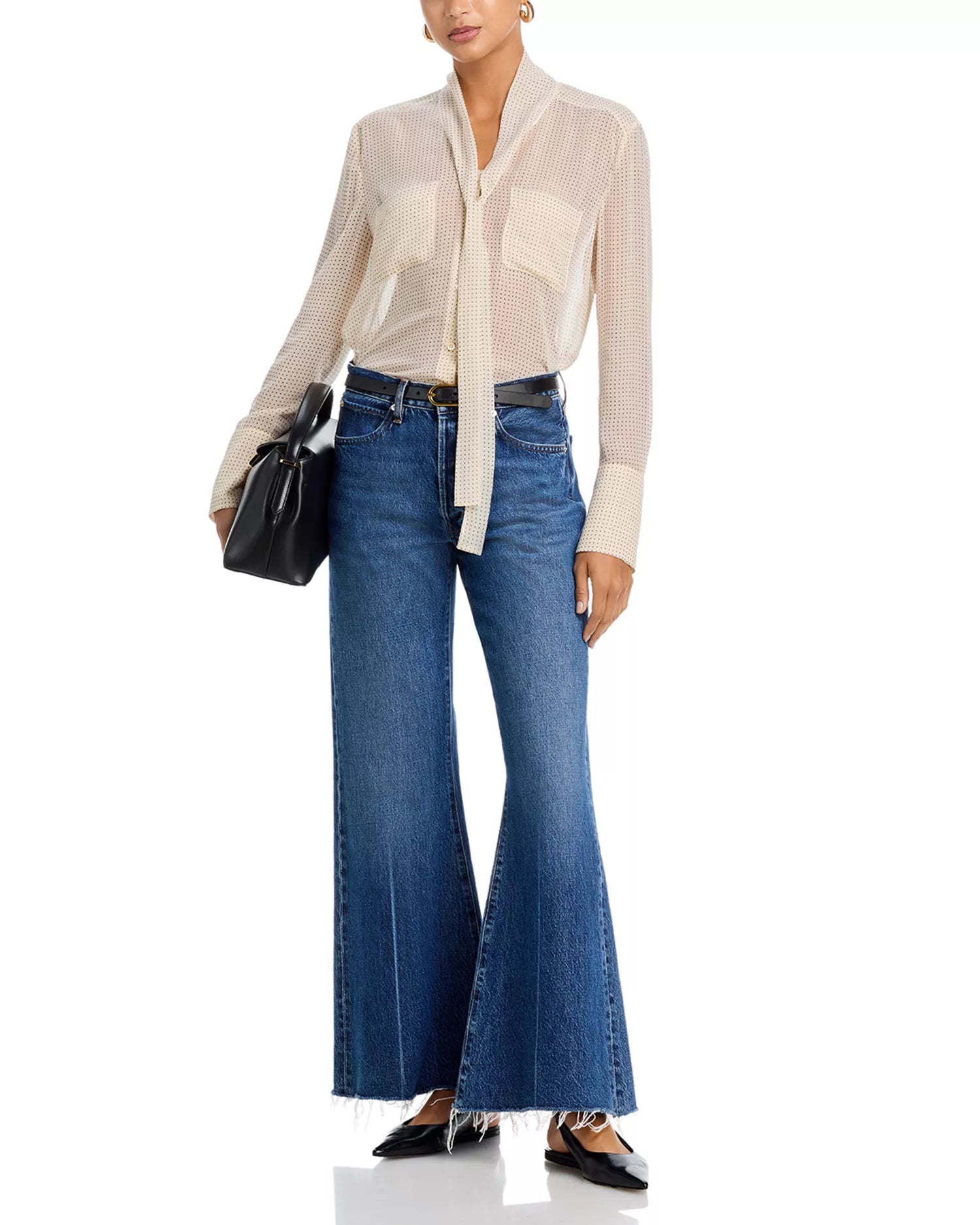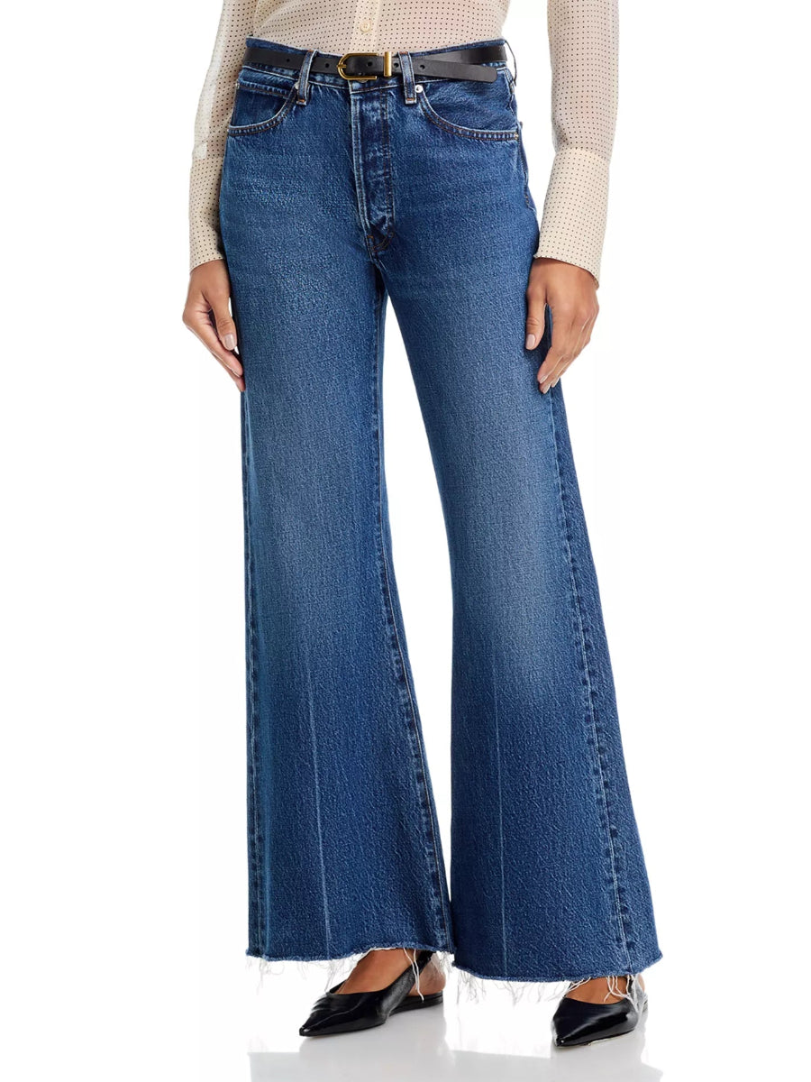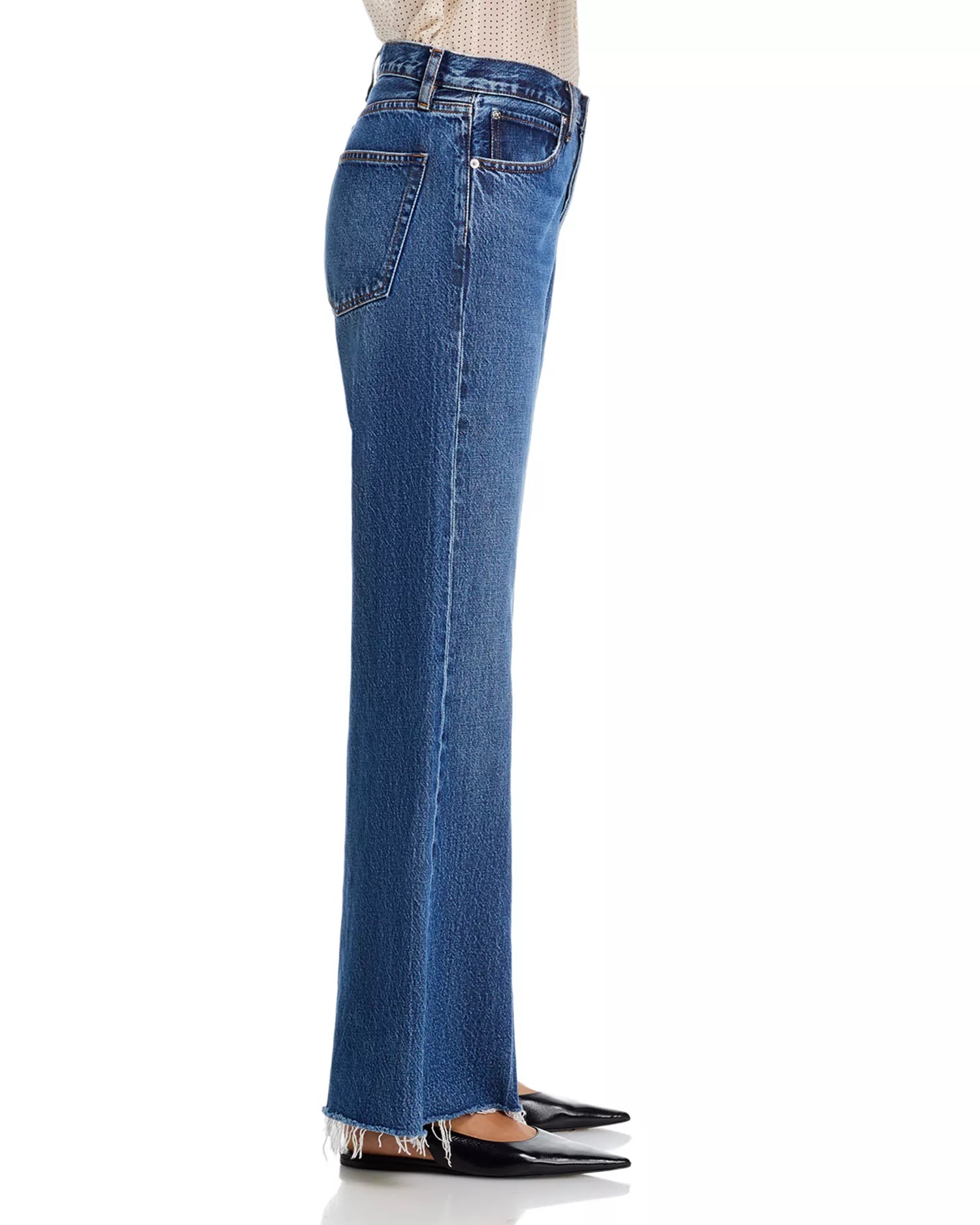 A modern denim essential, these high-rise blue jeans feature a flattering wide-leg silhouette with a raw hem for an effortlessly cool finish. Easy to dress up or down, they’re the perfect everyday denim staple.
