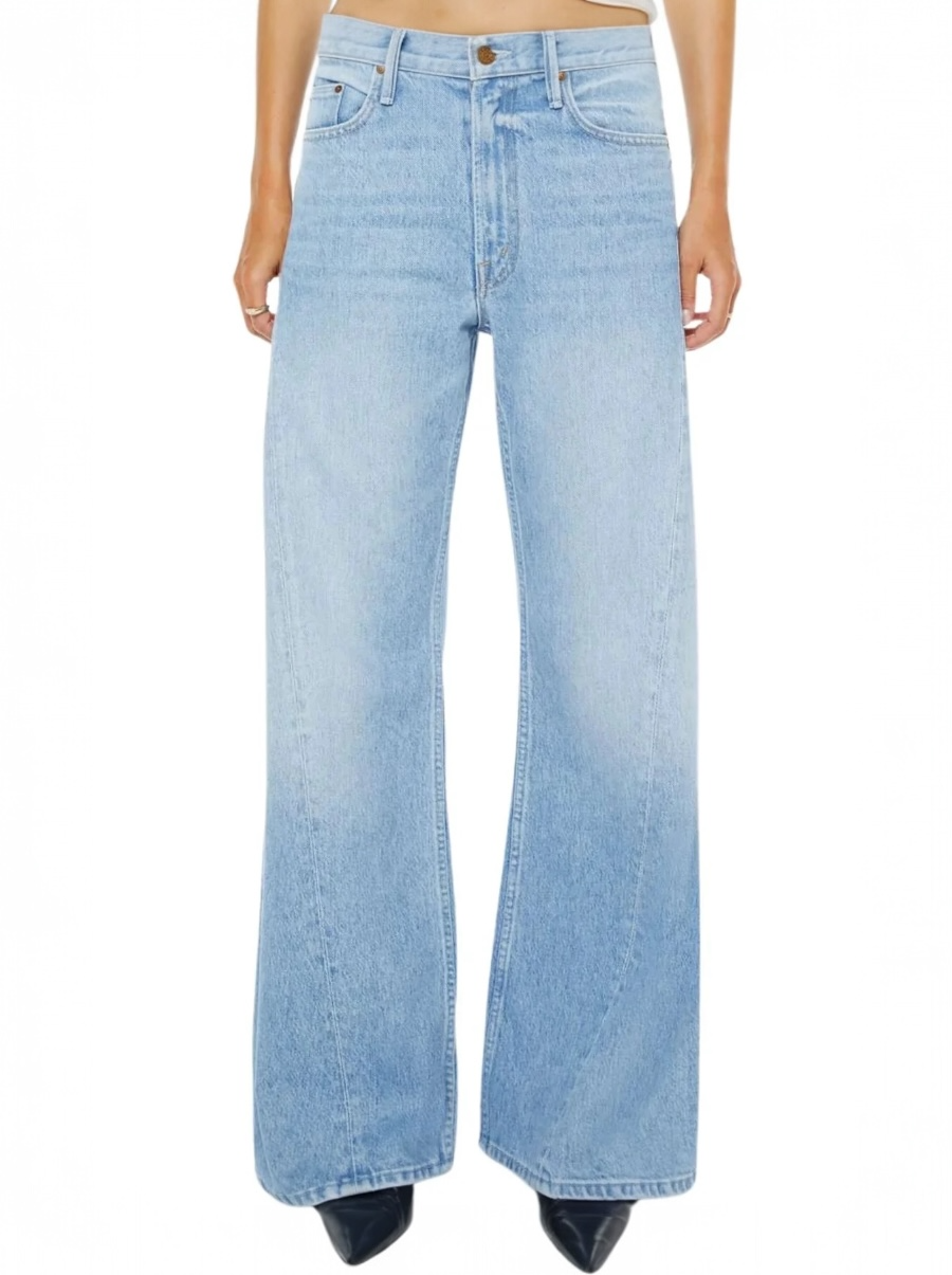 The Lemon Twist Jeans by Mother Denim are high-waisted, wide-leg jeans. They feature a distinctive curved outer seam which adds a unique stylish detail to the silhouette. The jeans have a 33.5-inch inseam and come with a clean hem, offering a polished look. These jeans provide a retro flair with their design while elongating the wearer's figure through the eye-catching seam details. These jeans are rigid and take time to break in. MOTHER says patience is a virtue.