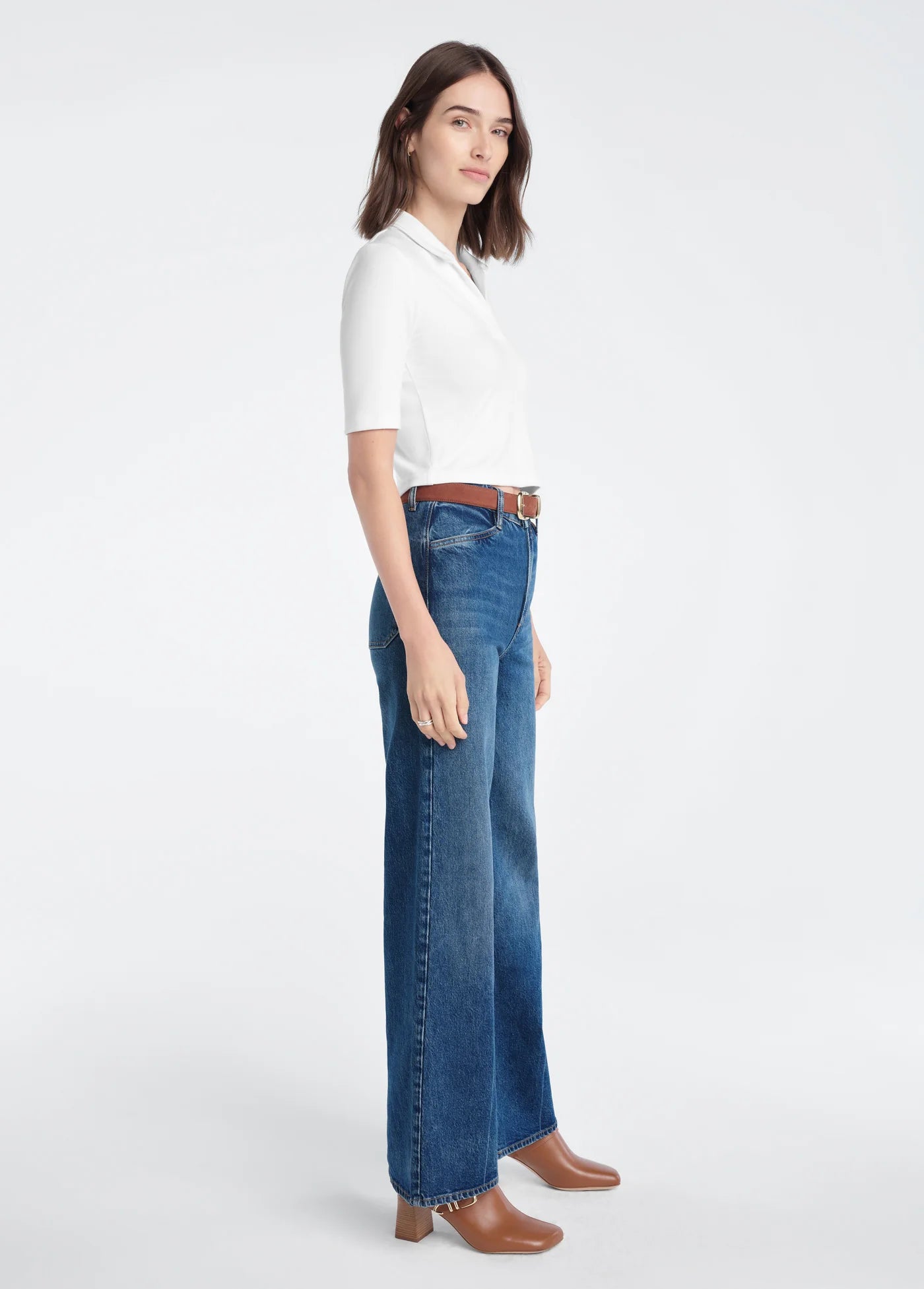 A favorite for its flattering 3/4-length sleeves and low-V opening. A classic polo, subtly redesigned. Read between the lines. You'll want to wear it with everything.