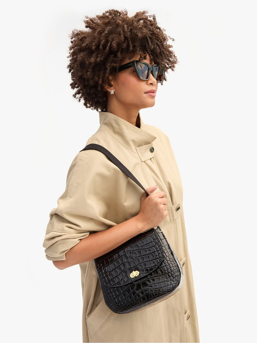 Louis Louis. A bag so nice, you say it twice. With a turnlock closure, back pocket, and three straps: shoulder, crossbody, top handle. Made of croco embossed Italian leather