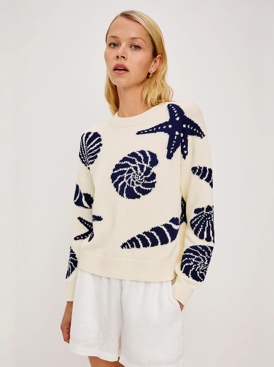 The Zoey elevates the essential knit into a statement-making layer. With a luxe cotton blend fabrication and eye-catching embroidery, this midweight sweater is crafted for comfort with a traditional crewneck fit.